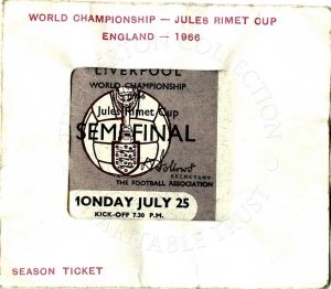 With the World Cup fast approaching the recent donation of a ticket to the semi-final of the World Championship Jules Rimet Cup at Goodison in 1966 is particularly appropriate. The ticket is in its original sleeve.
