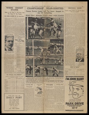 As the Echo reported, "There has never been such a joyful shout at Everton. It was prolonged for minutes and went on to the end of the game. The crowd never stopped cheering for eight solid minutes and Dean was hugged by all his comrades".